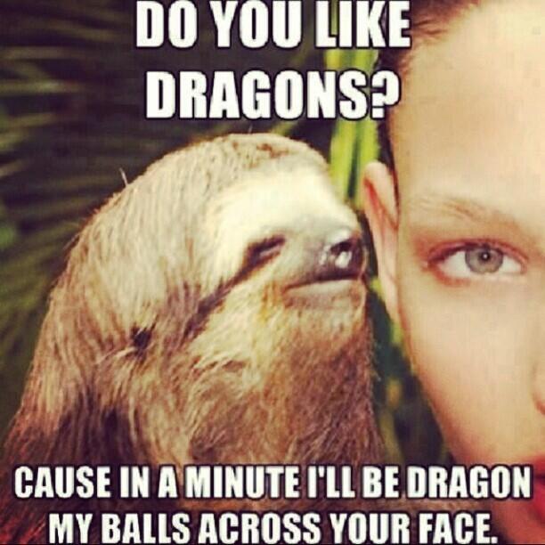 Do You Like Dragons Because I Ll Be Dragon My Balls Across Your Face Suspiciously Evil Sloth Quickmeme